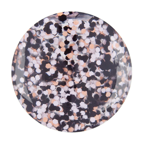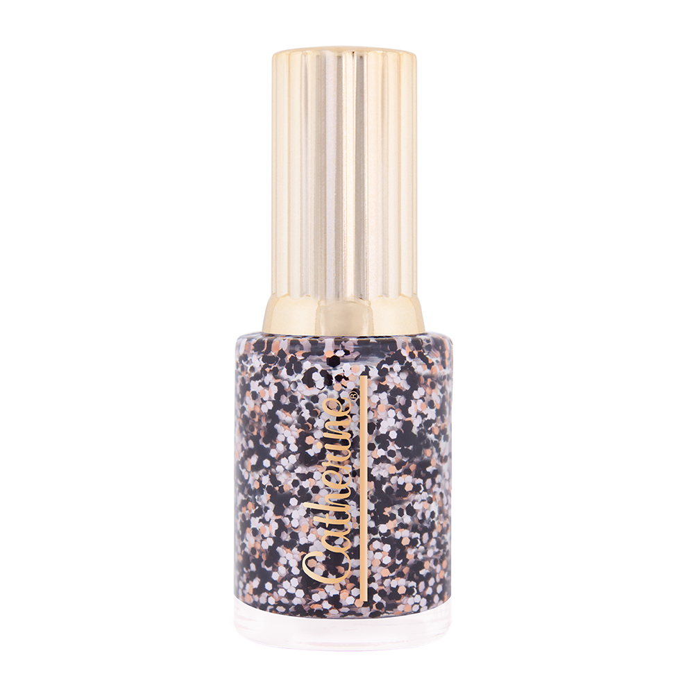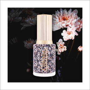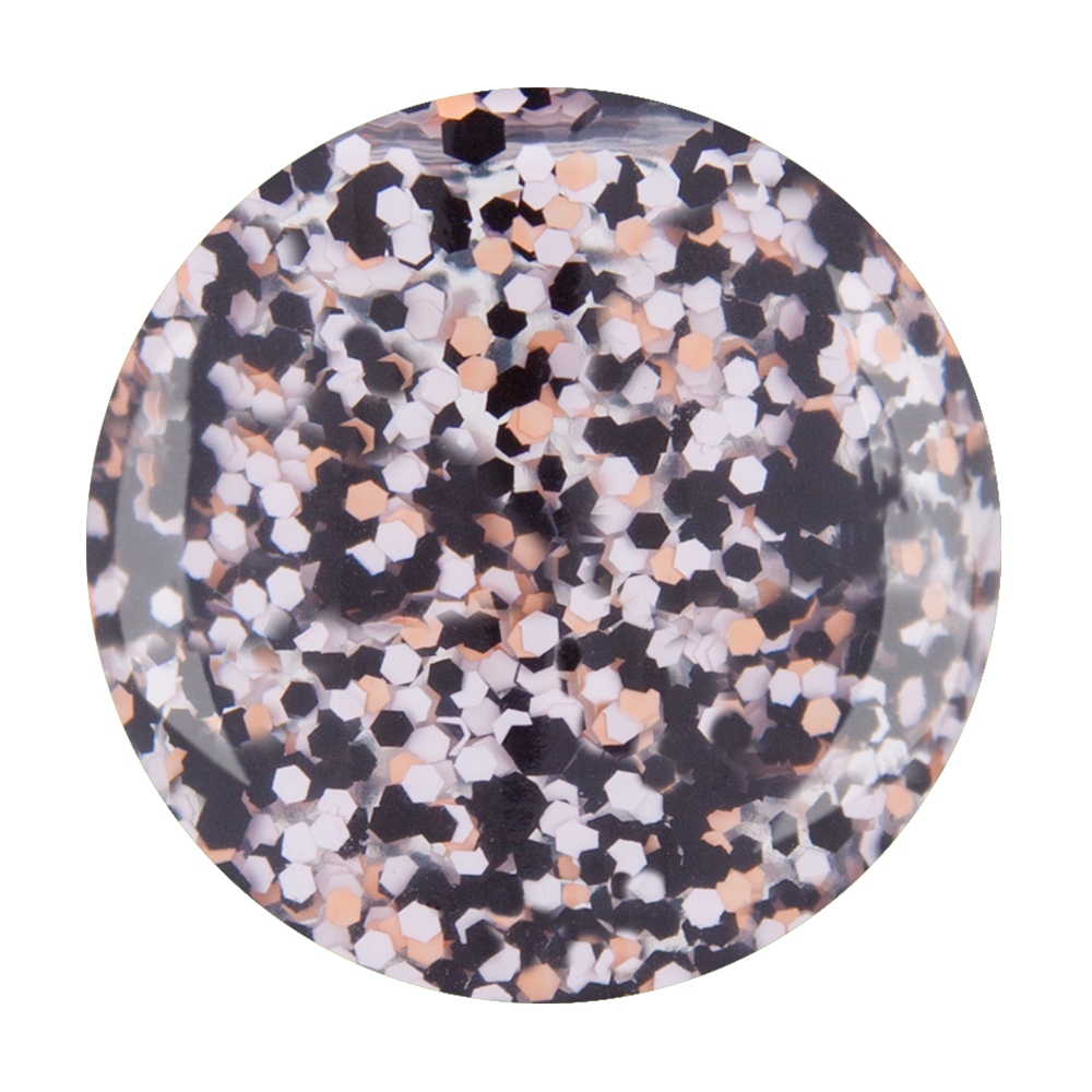 Schwarz-weiß-rosa Überlack für die Nägel. Dieses Produkt ist ein Duo Lac, er kann sowohl als Farblack zum vollflächigen Auftrag als auch als Effekt-Top Coat genutzt werden.