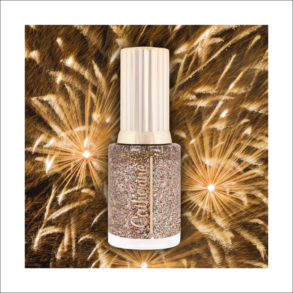 Goldener Überlack für die Nägel. Dieses Produkt ist ein Duo Lac, er kann sowohl als Farblack zum vollflächigen Auftrag als auch als Effekt-Top Coat genutzt werden.