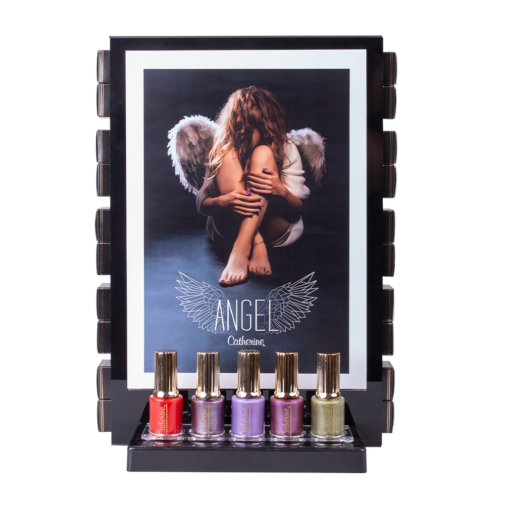 Enthält: 4 x Classic Lac pro Farbe à 11 ml, 1 Tester pro Farbe à 11 ml zum halben Preis + GRATIS: Verkaufsdisplay + Display Picture Angel DIN A4. GRATIS 25 Tragetaschen Exclusive small. Alle Trendprodukte sind zu 100 % vegan.