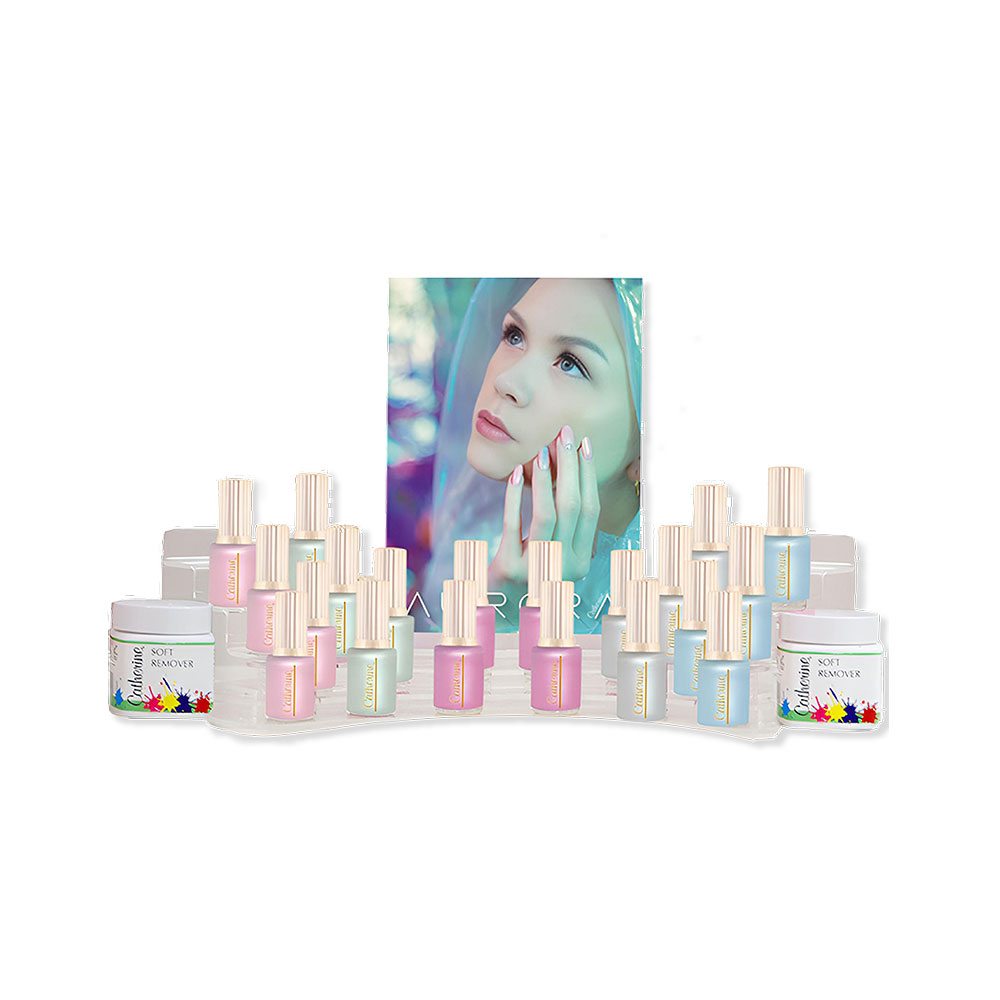 Enthält: 3 x Classic Lac pro Farbe 11 ml + GRATIS: 1 Tester pro Farbe á 11 ml, 2 x Soft Remover Box, Verkaufsdisplay + Display Picture Aurora 15,9 x 25.,0 cm.