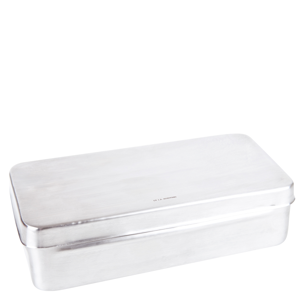 Formschönes Instrumentenetui aus Aluminium. Quadratisch – praktisch - sicher. Maße: L/B/H 20,4 x 10,3 x 4,6 cm
