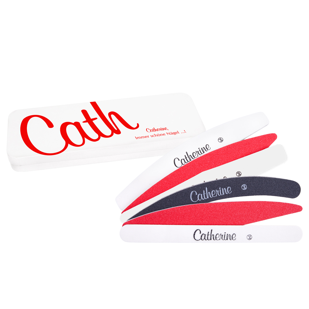 Feilen-Set von Catherine für immer schöne Nägel. Die Feilen sind für Kunst- und Naturnägel geeignet und schnell und praktisch in der Anwendung, für Nagelpeeling und Oberflächenkorrektur. Mit der Multi Tool Box bleibt die Nagelfeile immer geschützt. Enthält: 1 x Power Sharky File 120/240 red/white, 1 x Basic File 120/240 black/white, 1 x Final Wave File 120/240 red/white, 1 x Boomerang File 100/180 black, 1 x Profi Feile New Style 120/120 white, 1 x Sandblatt File New Style 120/120 white, + GRATIS Multi Tool Box