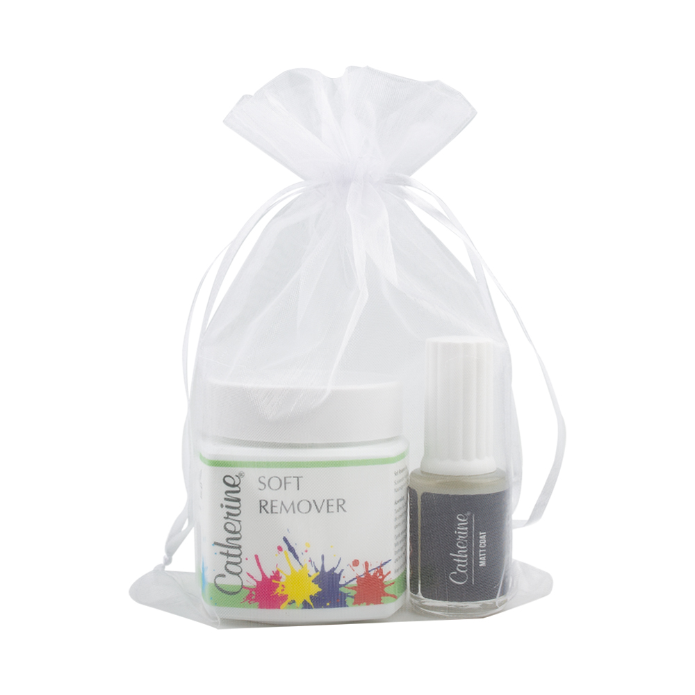 Matt Coat und Soft Remover Box im Organzabeutel. Bieten Sie für den schnellen Wechsel zu Hause das Set „Go for Matt“ an. So haben Ihre Kunden immer wieder die Möglichkeit, bis zum nächsten Termin das glänzende Nail Design in matt zu versiegeln. Ist wieder Glanz gewünscht, einfach den Matt Coat mit der Soft Remover Box entfernen. Sie und Ihre Kunden profitieren außerdem beim Kauf des Sets von einer Preisersparnis!