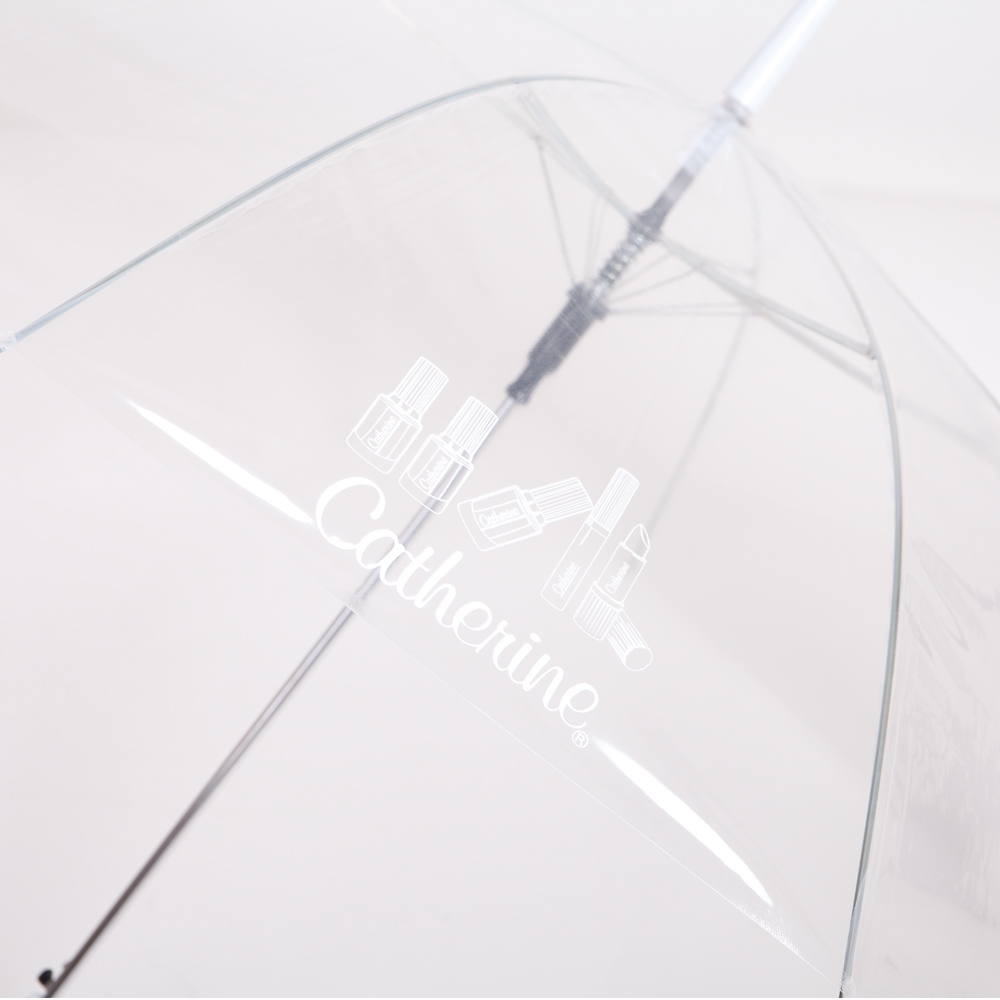 Hochwertiger Automatikschirm. Durchmesser 98 x 83 cm, Material: POE Kunststoff transparent, Metallschaft und Metall-Speichen.