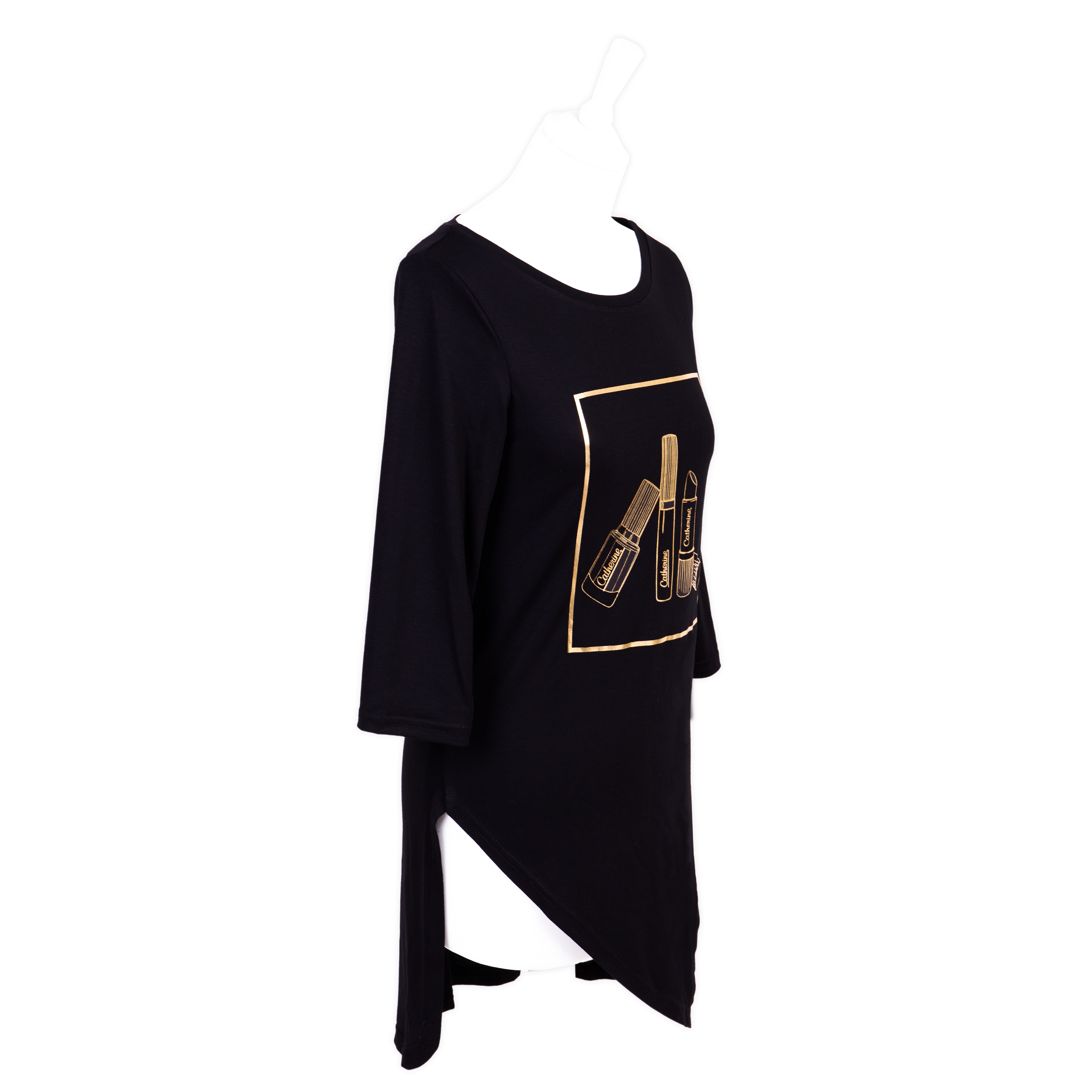 Mit ¾-Arm und einem figurbetonten Schnitt. Der leicht fließende Stoff und der raffinierte asymmetrische Schnitt sorgen für ein bequemes Tragegefühl und modernes Erscheinungsbild. Material: Viskose, Lycra. Hinweis: bei 30 °C auf links waschen, auf niedrigster Temperatur bügeln, nicht bleichen, nicht trocknergeeignet. Achtung: Das Shirt fällt kleiner aus, bitte bestellen Sie ggf. eine Konfektionsgröße größer!