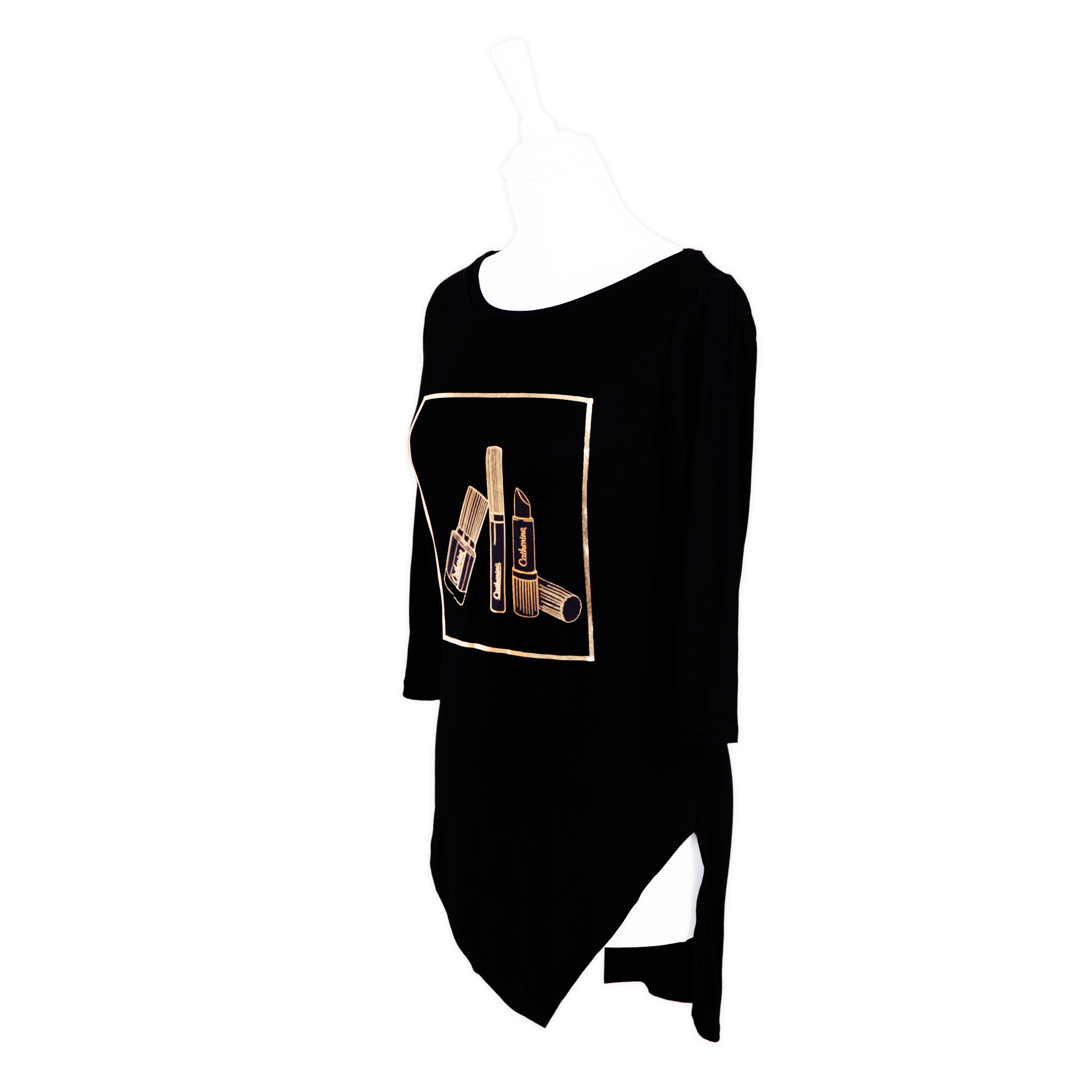 Schwarzes T-Shirt mit Glitter-Gold-Print.