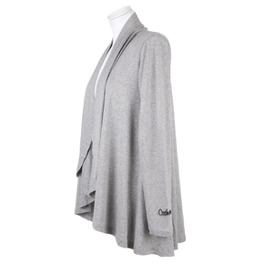 Cardigan von Catherine MODA. Der neue Lifestyle Cardigan aus Strickware zeigt dekorativ das Catherine-Logo. Aus 94% Viskose und 6% Lycra.