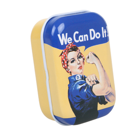 Minz-Pastillen in kleiner Dose. Im We Can Do It-Layout.